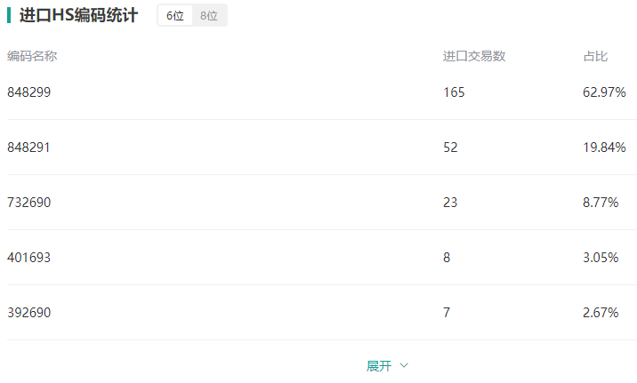 进口HS编码统计: