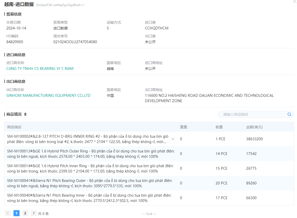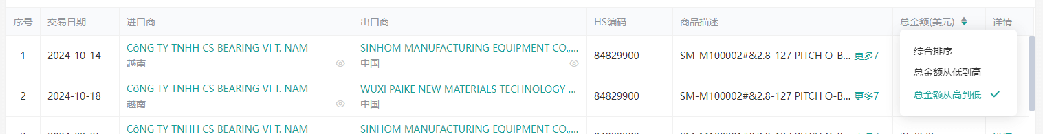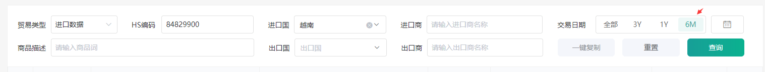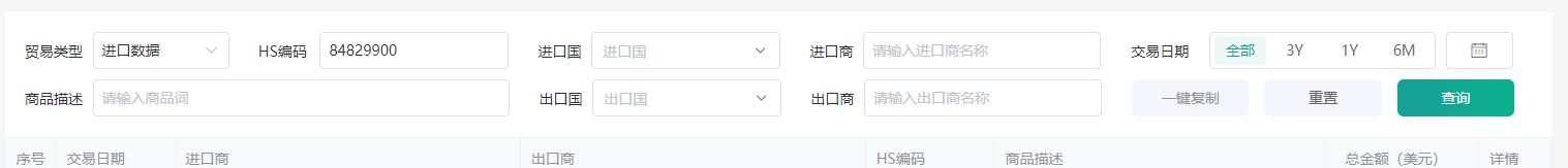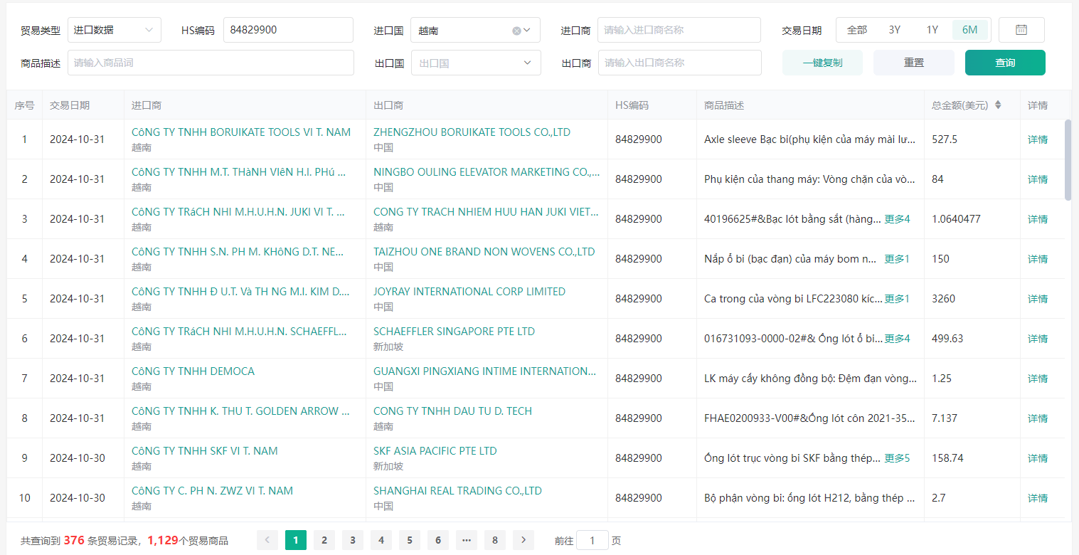 海关数据查询教程以海关编码“ 84829900 滚动轴承的其他零件 ” 越南进口数据为例