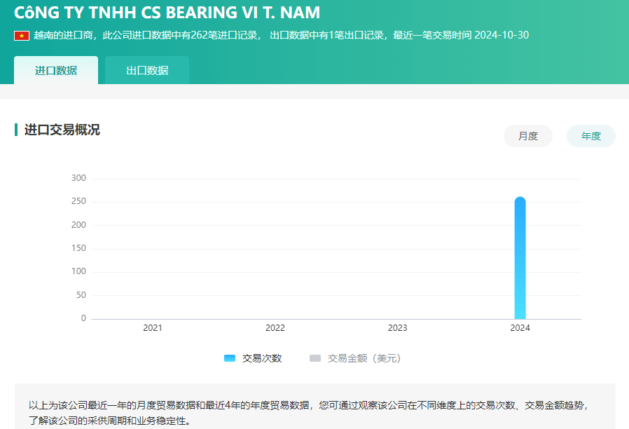 我们可以看到该越南公司“进口数据”和“出口数据”