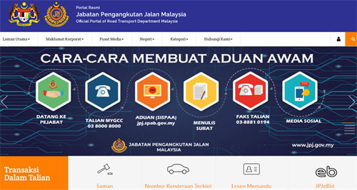 马来西亚陆路交通局 外贸日报小编 22217文章 18评论 2021年12月7日13:53:22马来西亚陆路交通局已关闭评论1,950 马来西亚陆路交通局官网:www.jpj.gov.my 马来西亚陆路交通局(Malaysian Road Transport Department,RTD)负责发放马来西亚车牌号码、机动车牌照登记、机动车登记、司机登记以及经营马来西亚拖车服务的机构。 马来西亚陆路交通局位于普特拉贾亚联邦政府行政中心D4座,上级部门是马来西亚交通运输部。 马来西亚陆路交通局官网国内无法打开。