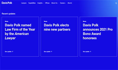 达维律师事务所(Davis Polk & Wardwell)是一家全球律师事务所,在全球有10个办事处约有1000名律师,可以提供卓越的服务、复杂的建议、创造性和实用的解决方案,在资本市场、并购、信贷、破产和税收方面用有有全美最好,最全面的公司部门之一。
