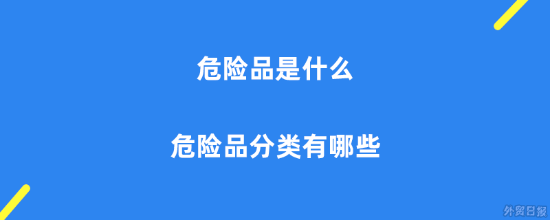 危险品是什么,危险品分类有哪些 外贸 996文章 0评论 2022年10月23日16:21:45危险品是什么,危险品分类有哪些已关闭评论672 危险品是指化工产品或烟花爆竹等易燃易爆的货物,危险品是易燃、易爆、有强烈腐蚀性的物品的总称,比如如汽油、强酸、强碱、苯、萘、过氧化物等运输和贮藏时,应按照危险品条例处理。 危险品分类有: 第1类危品:爆炸品 第2类危品:压缩气体和液化气体 第3类危品:易燃液体 第4类危品:易燃固体、易燃物品和遇湿易燃物品 第5类危品:氧化剂和有机过氧化物 第6类危品:毒害品和感染性物品 第7类危品:放射线物质 第8类危品:腐蚀品 以上就是关于危险品是什么,危险品分类有哪些的相关介绍,更多知识关注外贸日报。