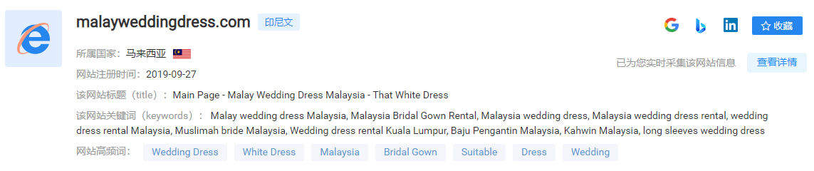 2.输入需要背景调查的网站地址,我们以“malayweddingdress”为例