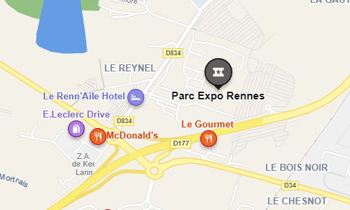 法国雷恩会展中心地址:Rennes parc expo 2, La Haie Gautrais CS 27 211,35172 Bruz Cedex