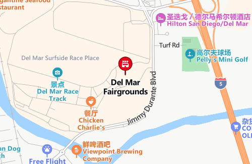 德尔马展览会场地址:2260 Jimmy Durante Blvd, Del Mar, CA 92014 德尔马展览会场可从主要高速公路轻松抵达,并为游客提供充足的停车位。