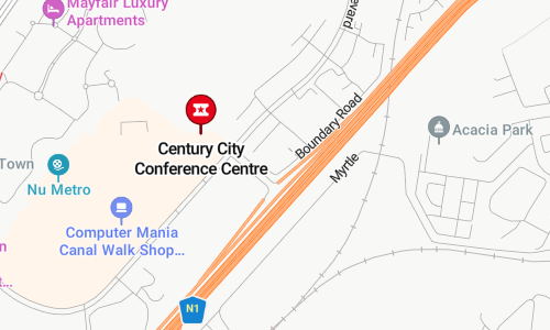 世纪城会议中心地址:4 ENERGY LANE,CENTURY CITY Milnerton 7441 地理位置优越,位于N1高速公路上,距离开普敦中央商务区和开普敦国际机场仅几分钟路程。